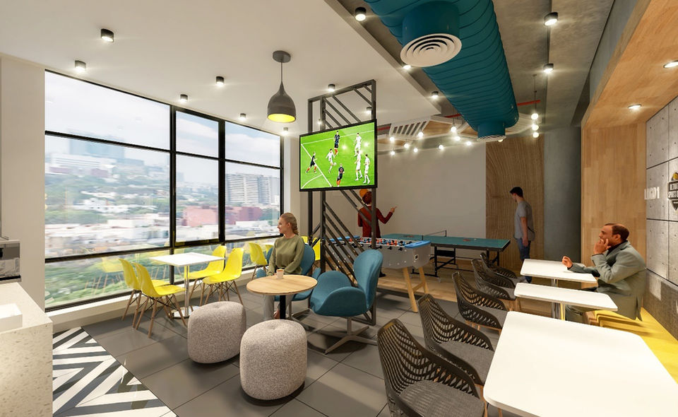 The space is designed to foster collaboration and creativity, with a variety of workspaces, meeting rooms, and breakout areas. The office also features a recreational space with a café and gaming zones, promoting employee well-being and a fun work culture.